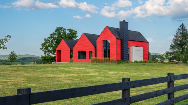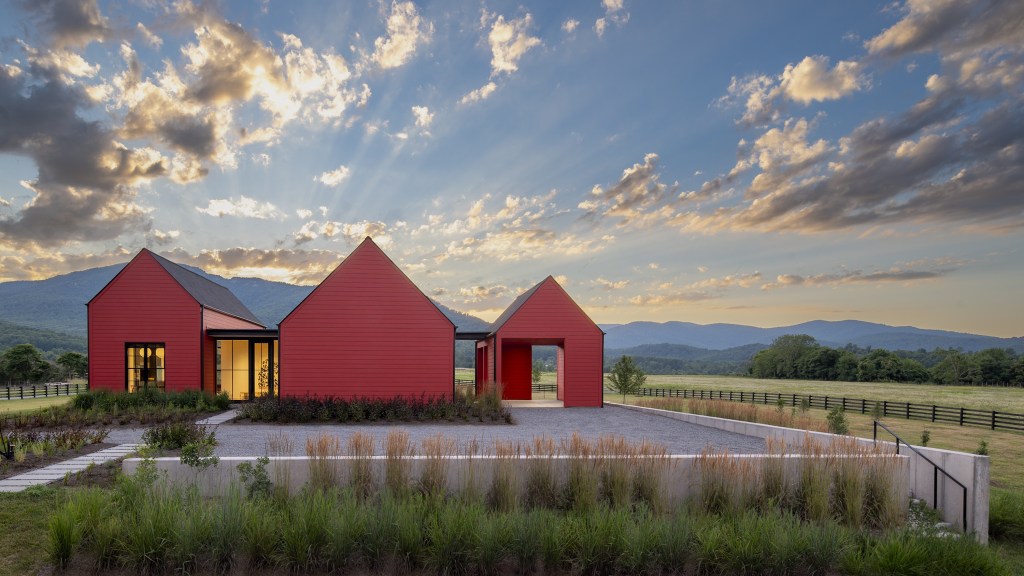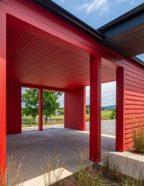Caption: The Etlan Farm House was designed in response to the many red barns of the Virginia countryside.