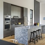 “We pushed it the cabinets and appliances out of the wall of the building to make the space feel as open as possible from front to back. We didn’t want anything above the island as well. The result was an uninterrupted view through the whole space,” Gurney adds.