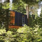 The Signal Shed proves that a great sum of money isn’t necessary for good architecture. Designer Ryan Lingard built the outdoor adventure post largely with recycled products—windows, hardware, siding—and set the structure on piers to limit site disturbance. Large sliding doors create a connection to the interior, and operable rain screen shutters protect the windows. A dark stain helps the shed blend in with the forest. One judge lauded its “absence of almost everything,” while another commented: “It sets apart and fits well with the land.”