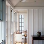 Respect for historic antecedents is particularly apparent on the home’s north façade—a conventional composition of solid whitewashed walls, punched double-hung windows, and pitched roofs. For symmetry and balance, Good specified shutter widths that align with vertical batten siding and the standing seams of a lead-coated copper roof. Tall, skinny windows of the same width connect the front elevation’s two primary volumes with muntin bars spaced 12 inches apart to look like a seamless continuation of the siding.