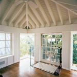 Panoramic views up and down the river are further enhanced by a projecting tower structure that creates three distinct experiences. At its base, the tower provides an open, covered pavilion that spills onto a broad ipe deck. Above that, it houses a quiet, enclosed sitting area off the master bedroom. Up top, it’s a crow’s nest (accessible by ladder) affording 270-degree views.