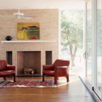 The same ordered geometry continues in back, although the south elevation flips the solid-to-void ratio, using liberal amounts of 1-inch thermal glass to dissolve the lines between indoors and outdoors. On the first floor, 10-foot-tall glass panels (some movable) flood the interiors with natural light and—thanks to the home’s elevated profile—create the illusion of living spaces that flow right out onto the river’s edge.