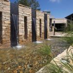 The multi-tone Jerusalem limestone façade makes a bold statement, and a pair of massive, handmade steel entry doors open to a broad concourse area. This transitional space serves as the spine of the structure, connecting two wings. One wing houses the fitness area; the other, several multipurpose rooms that are flexible enough for town hall meetings or fancy dinner parties.