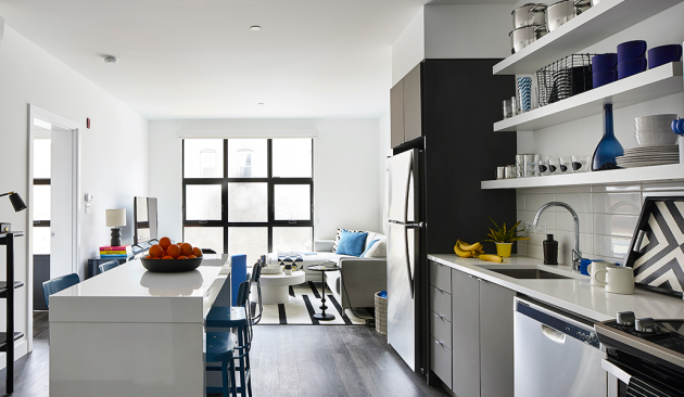 The existing building, 32 Cambridge, houses 46 micro apartments and street-facing retail and amenity spaces. The new building’s massing and structure is designed to complement its historic neighbor; its amenity areas and 125 units feature oversized windows and building material palettes that evoke industrial use.