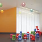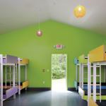 Inexpensive materials, deployed cleverly, dress up the project’s basic forms. “I love it because of the simplicity and color,” said one judge. Alternating shades of corrugated metal siding contrast with cement-board panels painted the bright hues of Girl Scout cookie boxes. Interior light fixtures came from a designer (and former Girl Scout) found on Etsy.com. And the bunk beds were designed and built by students in a Kansas State University studio, taught by Stockman and fellow El Dorado principal David Dowell, AIA.