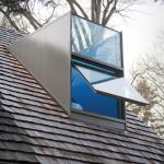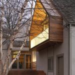 The jury singled out this project for its restraint. David Dowell, AIA, left well enough alone, executing a simple interior renovation, but one “that marks itself on the outside of the building and transforms the exterior,” a judge said. For clients wanting a playroom, Dowell wrapped the inside of the oversized garage roof volume in 100-year-old sinker cypress, extruding the “tube”—a platonic house shape—as an exterior balcony.