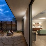 That sexy screen encloses a front courtyard that provides a barrier between living spaces and the street.