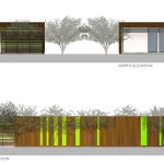 Computer-generated experimentation on the size of gaps in the screen produced carefully modulated degrees of transparency that permit breezes to pass through, but also offers privacy at standing and sitting eye levels.