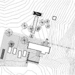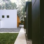 A deliberately direct driveway plunges to an entry court populated by four obscure, coal-black boxes: three garages and a workshop. The workshop steps out of line with its partners, opening a narrow passage to an inner courtyard and the house.
