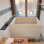 Not many people would be open to a wooden bathtub, but these owners took on the challenge. The wooden vessel must be filled with six inches of water at all times to prevent splitting and cracking. The tub sits within and drains through a waterproof shower pan lined with stones for overflow prevention. A large shower is only steps away—another nod to Asian practices. “The Japanese tradition is that you get clean before you go in the tub,” De Vido explains.