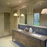 The antique oak vanity, custom-built to resemble furniture, as w…