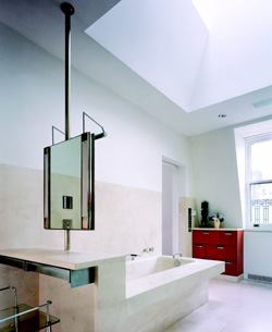 Details In custom building, the simplest details are often the most difficult to execute, and this bath provides a perfect example: a tub carved from a single slab of limestone. First, says architect Peter Rose, “We went to Mexico to the quarry and picked the stone.” Shipped back home, the chunk took shape in the hands of a New York City stone carver. To make the porous stone watertight, builder John Houshmand applied multiple coats of a special acrylic sealer, sanding between coats to leave a surface that looks like naked stone.