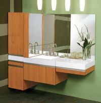 Eastridge modular vanities allow users to mix and match pieces based on storage needs. Each piece comes with either a drawer or a cabinet. Vanities feature wall-mounted consoles with solid wood frames and bamboo finishes. Decolav. 866.332.6528. www.decolav.com.