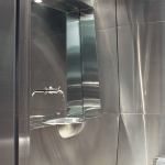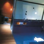The whole bath is kind of a meditation, Dubbledam says. “I was thinking of an airplane at night with low intimate lighting. Flick off the bright ceiling fixtures and a glow emanates from the lighted niches, a soothing flight of fancy.”