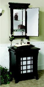 The Mini Nikko bath vanity features three door insert options: rice paper, rattan, or solid panels; the wood top accommodates any vessel sink or basin. The 32-inch-high vanity comes in 40 finishes, and a 38-inch-high matching mirror is also available. Vanity Flair. 888.479.4108. www.vanityflair.net.Circle 176
