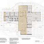 The terrazzo surface takes on a 3D quality as it folds down into a sunken tub shower and rises in a monolithic half-wall that bounds the shower’s deep end. Montalba based the splash-containing height of the enclosure on empirical data, collected by the architect himself, in situ, wearing a wet suit. The jury spoke approvingly of the garden aspect of the space. Said one judge, “It’s definitely an extrovert’s bath.”