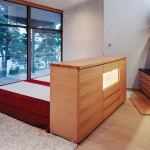 Helineva’s modesty belies the strategic design choices and simple, yet rich material palette she and Helin used to bring it all together. The site’s dramatic views are reflected in twin mirrors above the sinks just behind the bed, creating the illusion of additional space. The feeling of openness is further preserved by tucking storage in oak cabinets beneath the double vanity in the dressing area and a built-in headboard in the sleeping area.