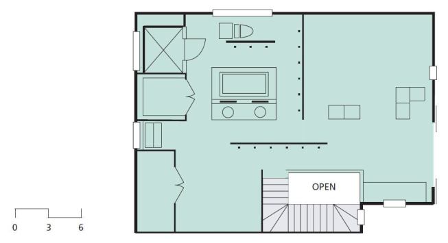 A tall windowed dormer offered a logical locale for the shower with its view over rooftops to the Golden Gate Bridge. A honed-granite backsplash behind the matching vanity countertop masks the bathtub, also encased in the same absolute black tiles. As with any good set design, great lighting brings it to life. Once again, Lundberg wanted to avoid marring the ceiling. “We set fixtures in the floor and cast light at striking angles up against the glass panels, so the panel itself becomes a light fixture.” No worries about changing a bulb in the floor though, the custom fiber-optic system has only one bulb that’s hidden in a closet.