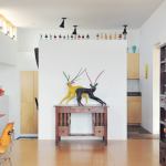 The clients were moving back to the States to retire, after years of living and working in Asia, and they’d amassed a large collection of folk art that had to be shipped back home. Shipping containers and houses made from them helped inspire the exterior design.