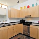 In this modest kitchen, the concrete countertops were cast on-site. The steel edge served as a form for pouring the concrete and remains as a visual accent.