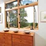 A floating wall separates the living room from the kitchen. Living room floors are made from low-VOC particular board with a low-VOC sealer laid over radiant-heat substrait. Finding ways to make industrial products into beautiful assemblages is part of the fun, says Browne. “We’re proud of this house because it does that in an interesting way,” he says.