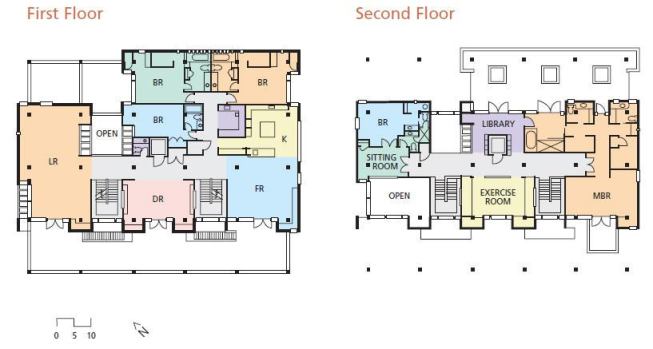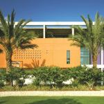 Concrete is among the most unyielding of building materials, but a concrete house is only as permanent as its physical connection to its site. Because this home sits on the shifty, hurricane-prone edge of Florida’s Gulf Coast, its structure extends farther beneath grade than it does above. “We went down for a long time before we started going up,” says architect Guy Peterson of a foundation that rests on pilings driven 40 feet into the earth. The visible part of the building is built around a frame of 12-inch-by-12-inch columns on an 18-foot grid. Inspired by the regional Modernism of the post-World War II Sarasota School, Peterson organized living spaces, which by law begin at 18 feet above sea level, in color-coded “cubes.” The color gradient (borrowed from the interior of a mollusk shell common to the local beaches) ranges from purple to white to yellow to orange, reflecting a privacy gradient from public uses to shared spaces to family areas to a children’s zone.