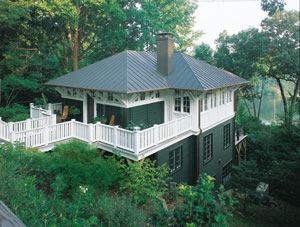 Most bridges serve a very simple purpose: They connect one place to another. But for the owners of this vacation cottage in Sherwood Forest, Md., the footbridge leading from their driveway to their front door is more than just a means of entry. It symbolizes the mental separation the house gives them from their busy lives in the Washington, D.C., area, an hour to the west. “It’s part of the idea of parting from the Washington way of life while they’re out here,” says the home’s architect, Donald Lococo. “I think [crossing the bridge] begins to calm you down.”