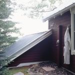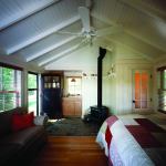 Homespun and efficient, this tiny cabin shows what’s possible in 240 square feet. Built in the 1920s, the original shelter (with adjoining boathouse) couldn’t be expanded, yet the owners wanted it converted into a guest retreat to complement the main cabin on a 10-acre lakefront property. Albertsson Hansen Architecture replaced the existing windows, wrapped the corner with two new windows to create panoramic views of the lake, and freshened up the exterior with a standing seam metal roof, new doors, and new siding to match the original. The firm also added new doors and an outdoor shower plumbed to an exterior wall. The cozy interior now houses a small kitchenette, a half bath and water heater, a wood stove, a queen bed, and a small seating area. The restored boat storage bay sports racks for kayaks, a scull, and a 1960s Chris-Craft power boat.
