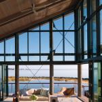 The home’s exposed structure lends it a resemblance to a boat dock or an industrial maritime building. In fact, it occupies the footprint of an old oyster-processing plant on a narrow spit of land curling out into the Chesapeake Bay. “This was clearly the most extraordinary place on the site to experience the water,” Overmyer says.