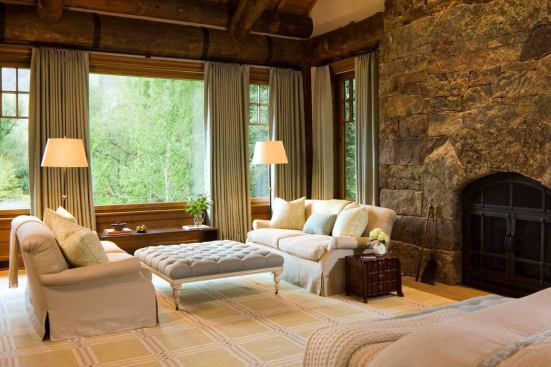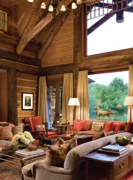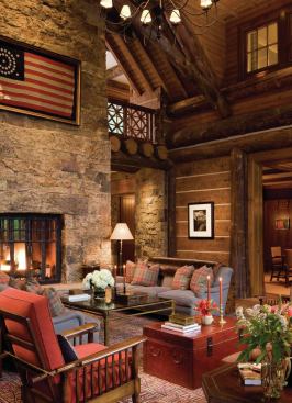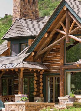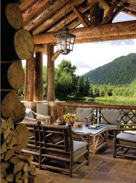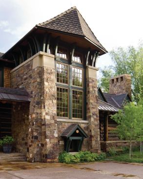 Gassett and his partners at Shope Reno Wharton are best known for their Shingle-style homes, to which this house bears a family resemblance in its scale, massing, and symmetry. But in shaping the house’s personality, Gassett drew on another turn-of-the-century model: the archetypal Western architecture of the great national park lodges. “The owners very much wanted it to be in the character of the Rocky Mountains,” says Gassett, who rusticated the house’s somewhat formal layout with stone masonry and massive log walls. “The plans reflect a logic of the lifestyle that transcends regionality,” he says. “The materials express the region.”