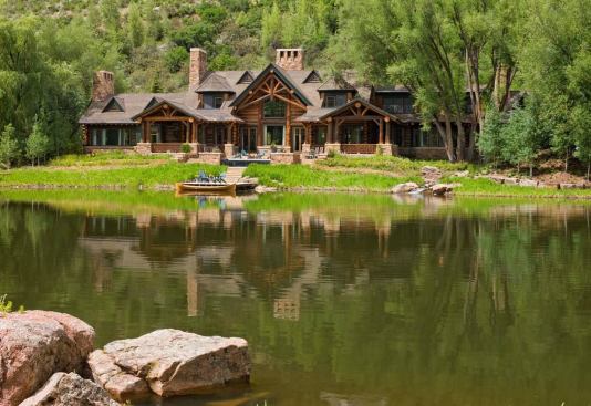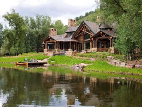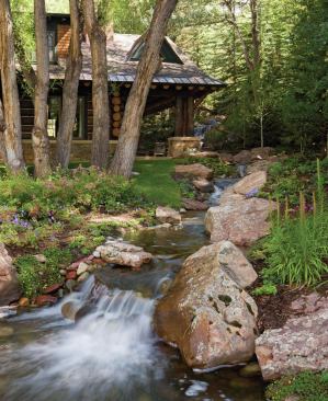 Designed as a year-round family retreat, the house stands on a wooded slope above Aspen, Colo., with views over the town below to the ski trails of Aspen Mountain. “It’s a ski house,” says architect John Gassett, “but Aspen has great programs in the summer, too. It’s a great place to hike and bike and be outdoors.” A stream flows along the property’s eastern boundary, feeding a clear pond that supplies both foreground views and—for those willing to work for it—a little something for the frying pan. “It’s a trout-stocked pond,” Gassett says. “There are some big ones in there.”