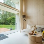 The home needs to be connected to water, electricity, and a sewage system when it’s being used for a long period of time, but still has many green sustainability features. Solar roof panels provide power to the home and return energy to the gird, and LED lighting conserves energy. The home’s quadruple-glazed facade lets in natural light while preventing heat loss. The home can temporarily be used off the grid in remote settings as well with the solar power it generates. The glazed facade and vacuum-insulated concrete walls not only provide insulation, but keep out noise, dust, and bacteria as well.