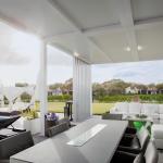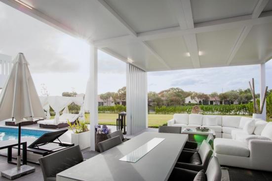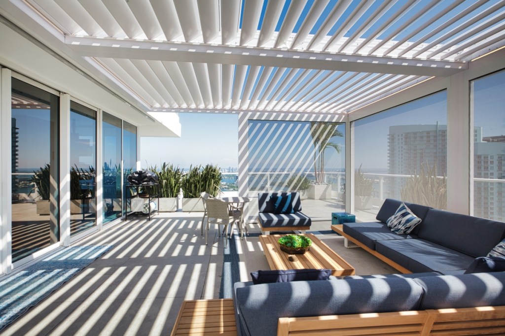 - Adaptability. An insulated solid roof format is also available. Retractable side screens help seal off insects and wind. A variety of LED lighting options are available.