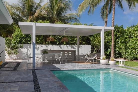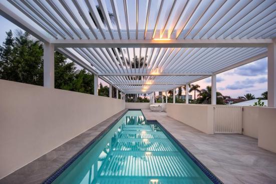 Today there are dozens of residential and commercial pergola systems, from low-end kits from big-box retailers to pricey on-site construction. Kulyk singles out a family-owned and operated Florida company, AZENCO Outdoor, as his go-to pergola manufacturer.