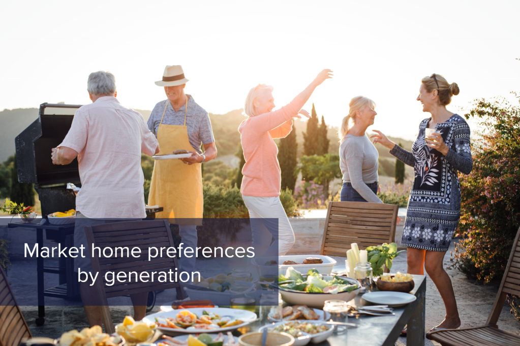 The takeaway: Market home preferences by generation. Gen Xers place high value on family-friendly features, like the desired number of bedrooms and private outdoor space. Baby boomers crave functionality: a floor plan that meets their needs, the right number of bedrooms and bathrooms, and air conditioning. Silent generation buyers prioritize value and comfort: finding a home within their price range, air conditioning, the right number of bathrooms and their preferred floor plan.