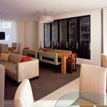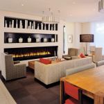 Features and finishes were chosen to engage the senses. Floors are white cement mixed with bronze lapis sand. To bring out its color and texture, the concrete was lightly honed with a rotary machine, and, once cured, a handheld machine fitted with finer and finer grinding pads. The dramatic gas fireplaces created another construction puzzle. Their openings are so large that a concealed air curtain was necessary to prevent them from pulling conditioned air out of the room. A make-up supply fan located on the roof distributes air through chases concealed in the walls and discharges the combustion air out of grilles hidden in the fireplace surrounds. An exhaust fan in the fireplace flue draws the hot air and carbon dioxide out of the firebox.
