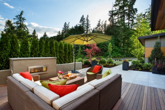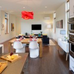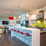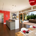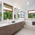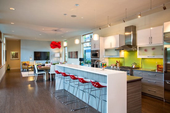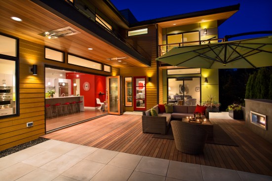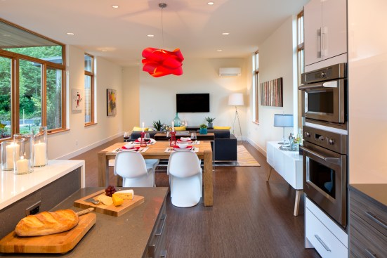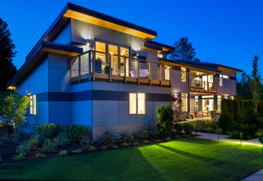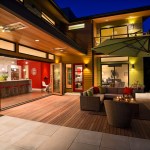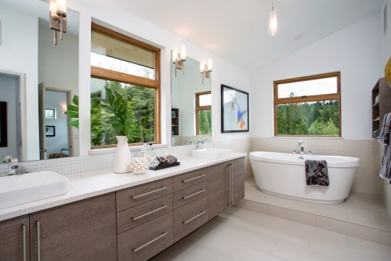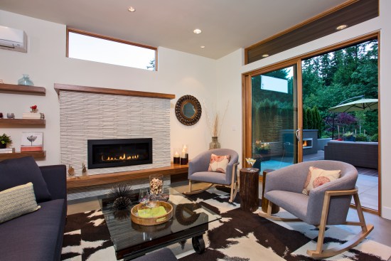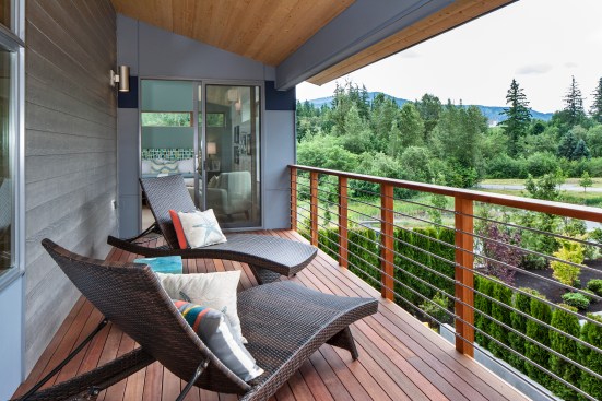 Designed by architect Michael Woodley, the “Northwest Modern” dwellings feature soaring ceilings, sky bridges with metal railings, covered patios, and rustic stone exteriors. Prices begin at $560,000 with plans from 2,200 to 3,300 square feet.