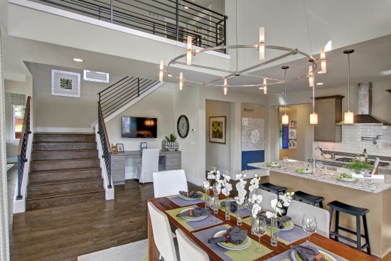 The revamped Quadrant line builds on the most popular design features of the Evoke brand such as open metal handrails, minimalist fireplaces, and spa-like master baths with soaker tubs. It does not include Evoke’s unlimited range of design choices, which limited the firm’s ability to streamline the construction process and drove up costs. Instead, a Flex Option program allows customers to personalize floorplans early in the selection process, Krivanec says. The approach keeps home prices as low as the $430s, a sweet spot for many move-up buyers.