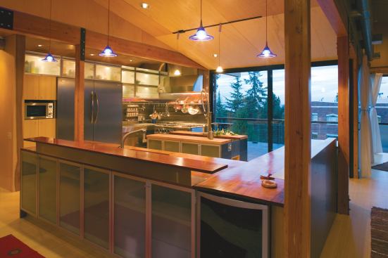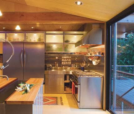 The best techniques used to produce kitchens that bridge the gap between afternoon picnic and elegant dinner party can be seen in all of these projects. Keeping floor levels and materials the same strengthens an indoor-outdoor bond and makes spaces seem larger. Take that philosophy up the walls or onto the ceiling and continue those finishes beyond the kitchen area. Along the same lines, using traditionally outdoor materials inside and vice versa also enhances the room’s indoor-outdoor ambiance.