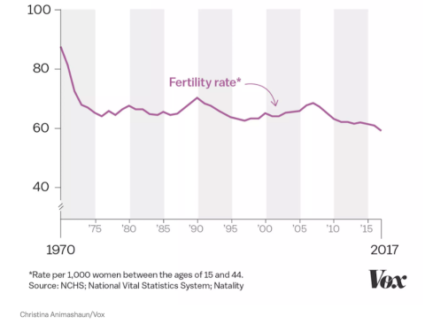 The “replacement” fertility rate of 2.1 — enough to renew the population — is typically viewed as the optimal level for stability. But in 2017, the total fertility rate, or number of births each woman is expected to have in her childbearing years, dropped to 1.76 in the US.