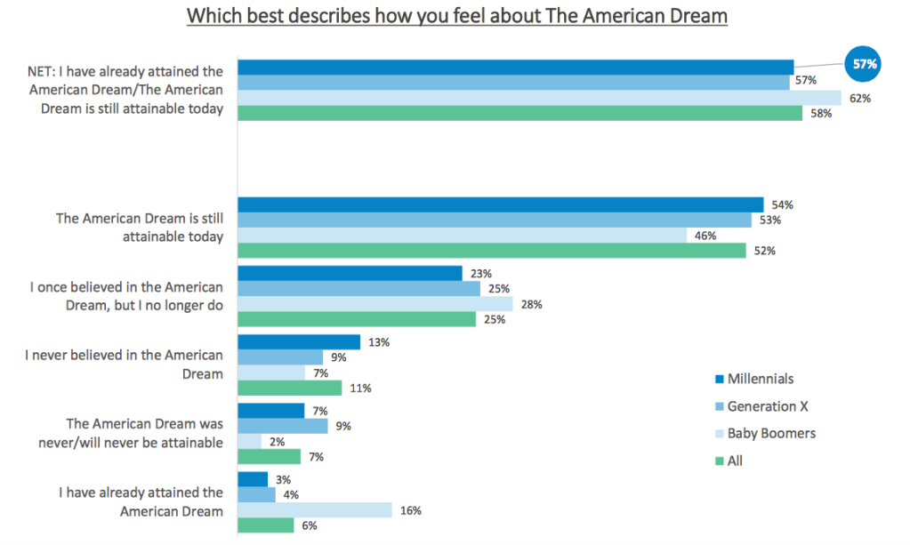 Having survived the great recession and the housing crash, these equities-shy millennials have turned to real estate as the cornerstone of their investment portfolio, the banks says, with homeownership emerging as the most popular ingredient of their American Dream (56%). Following homeownership, half cited paying off debt (51%) and having the financial means to retire comfortably (49%) as the second and third most critical components.
