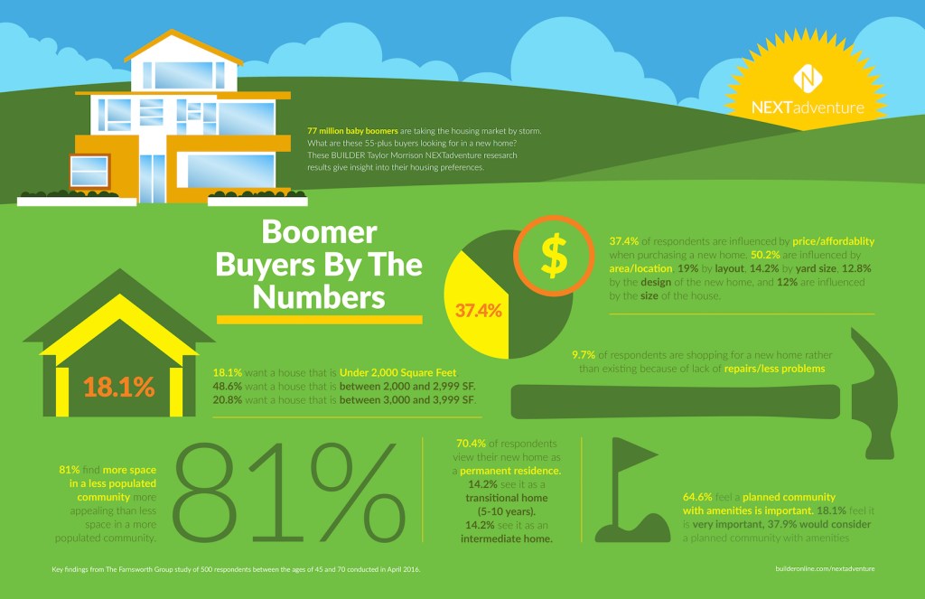 Washington, DC – (August 4, 2016) – Hanley Wood and home builder Taylor Morrison have just unveiled new research on what buyers in the 55+ age group want when purchasing a new home. Research revealed includes findings gleaned from a focus group with buyers in this age group as well as a separate survey of recent home buyers age 55 and older gauging values, preferences, and attitudes. Results of both studies are driving the design and development of the NEXTAdventure Home, a model home to debut at the International Builders Show in Orlando in January 2017. Demonstrating current lifestyle and living preferences among the important 55+ buyer demographic, the home is the joint collaboration and vision of Hanley Wood and Taylor Morrison.