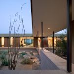 Not only did they save the drainage channel—a key element to recovering precious rainwater—but they went further by restoring the native landscape surrounding the house. The architects also left the site’s topography intact and carefully controlled any damage that might occur during construction. “We revegetated in a way that encourages animals to repopulate this site,” Rosano says. “We also preserved existing topography by cantilevering the house off the west side, plus that area underneath provides habitat for animals migrating down the wash.”