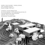 Currently, the structure’s western elevation offers the best views of distant mountains, however, orienting the house that direction would be the worst option for solar heat gain. In addition, houses eventually will be built in that direction. Rosano and Ibarra designed the house as two bars that run along the southeast axis for optimum solar orientation and what will be the best views.