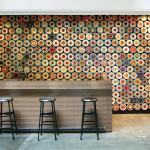 A staggered array of tea containers cling to a magnetized wall, creating dramatic and beautiful storage. The practical idea is a simple one, and it translates well to home kitchens—works great for spices.