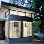 The glass walls of this bathroom are lifted straight from mid-century design, and they're made from off-the-shelf blocks. The wall looks striking from both inside and out, and it drenches the bathroom behind it in light while affording maximum policy. Four Palms, Austin, Texas. Architect/builder: CG&S Design/Build, Austin.