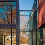 A glass bridge over a pool joins this modernist home’s two main sections, which gives those passing through the feeling that they are suspended in the air. Project: Bloom House, Glen Echo, Md.; Architect: Robert M. Gurney, Washington, D.C.; Builder: Bloom Builders, Bethesda, Md.