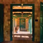 A large cutout in this entryway’s ceiling leaves the emphasis …
