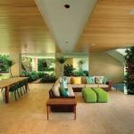 A large cutout in this entryway’s ceiling leaves the emphasis on inviting nature in—a fitting message for this LEED-Platinum home that focuses heavily on recycled materials and green features. Project: Ellis Residence, Bainbridge Island, Wash.; Architect: Coates Design Architects, Bainbridge Island; Builder: Smallwood Design and Construction, Bainbridge Island