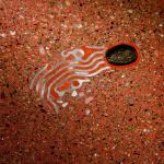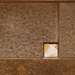 Cheng often embeds bits of ephemera in his concrete countertops; they’re like present-day fossils. Here, a tiny geode seems to float across the counter like a sea creature or a bit of jetsam. The wake appears to be made of inlay, but that’s actually a piece of valve body cover from an automatic car transmission, a bit of modern-day jetsam.